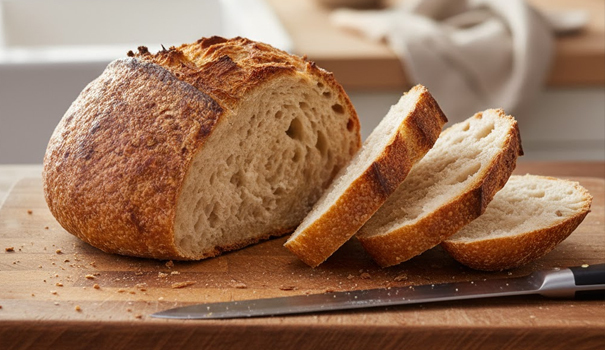 Store bread at room temperature in a paper bag or bread box for 2–3 days. For longer storage, slice and freeze it. Avoid plastic bags to keep the crust from turning soggy.