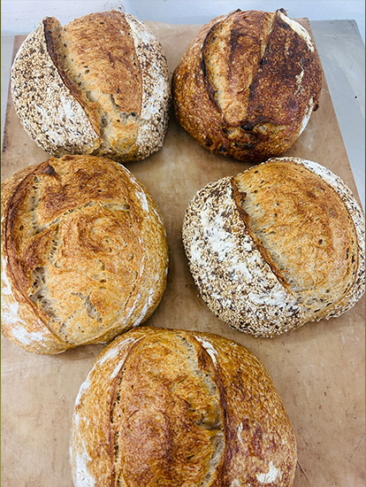 Hand-shaped loaves baked fresh daily, with care.